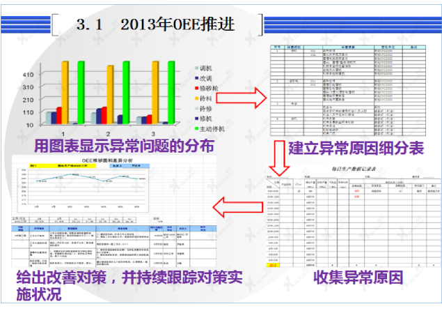 CTPM 3 STEP开始导入,建立各种机器的注油教材,展开设备注油不合理挖掘及改善,注油工具开发,提升注油效率;展开MTBF、MTTR教育,现场小组如实的记录设备故障情况,收集故障数据,提升设备综合效率。