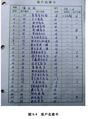 (1)客户名册卡犹如一本书的目录,记录每家客户的位置,便于查找(客户编号与客户销售记录卡编号一致)。