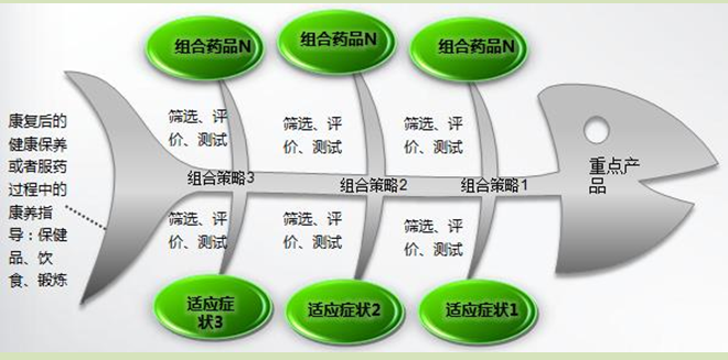 (3)围绕选中的疾病种类仔细研究有效合理的治疗途径,同时配以药企自身的药品种类。这个药品种类最好系列化,针对不同的疾病症状、不通的体质、不同的伴随性疾病,提供不同的治疗方案、用药方案。