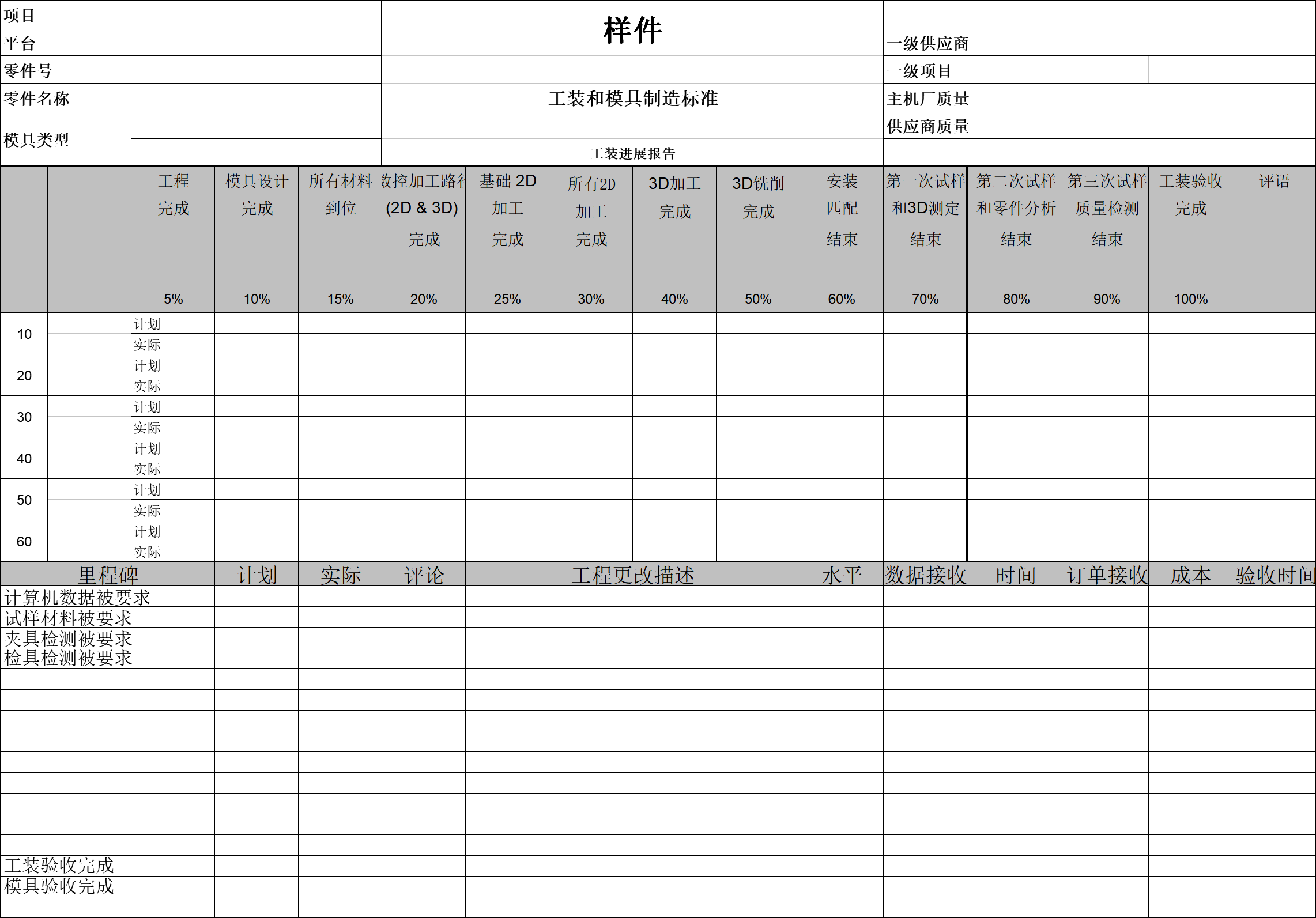 根据项目计划,推算出工装到位的计划,并随时跟踪。工装计划的内容如下: