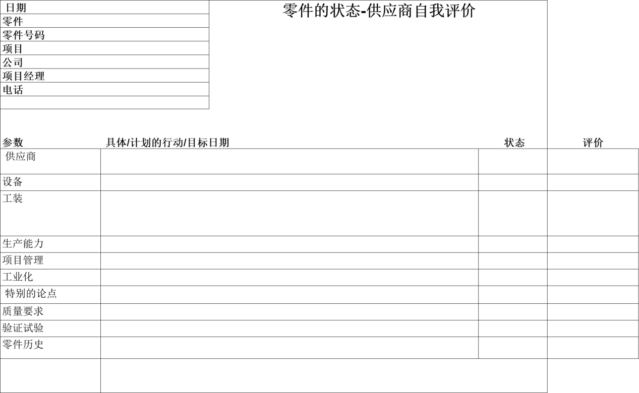 供应商对自己在供应商管理、设备能力、生产能力、项目管理、工业性、质量要求等方面的自我评价,并且用红、黄、绿来表明状态。