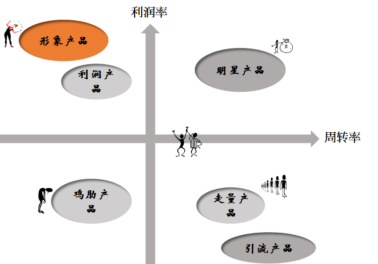 毛利率高但周转慢量不大,称之为价值产品(利润产品),价值产品往往具有较高的附加值,能够为代理商创造丰厚的利润空间,但是难卖。要么不开张,开张吃三年是价值产品,但三年里还得有解决生存问题的短平快业务。毛利率低但走货快称之为是走量产品就属于此类,可以为企业带来稳定的现金流,同时可以把高价值的产品一起带出去的。以前我曾经卖过的吊顶材料中的石膏板,就属于这种量大但利润率极低的产品,代理商就是希望透过普通石膏板,把价值产品轻钢龙骨带到项目中挣钱。
