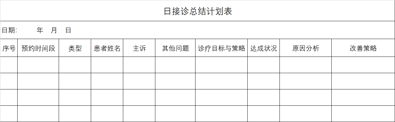 表5-1 日接诊总结计划表后面三列