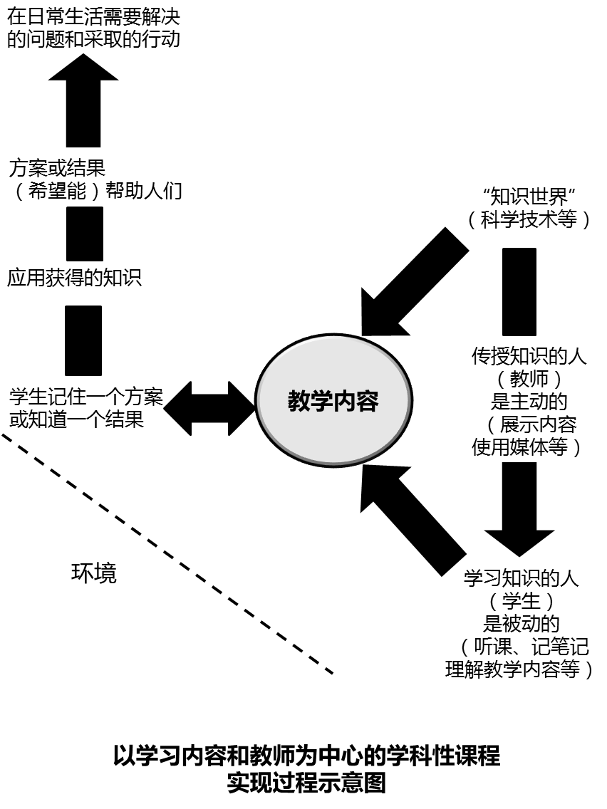 图9-1以学习内容和教师为中心的学科性课程实现过程示意图