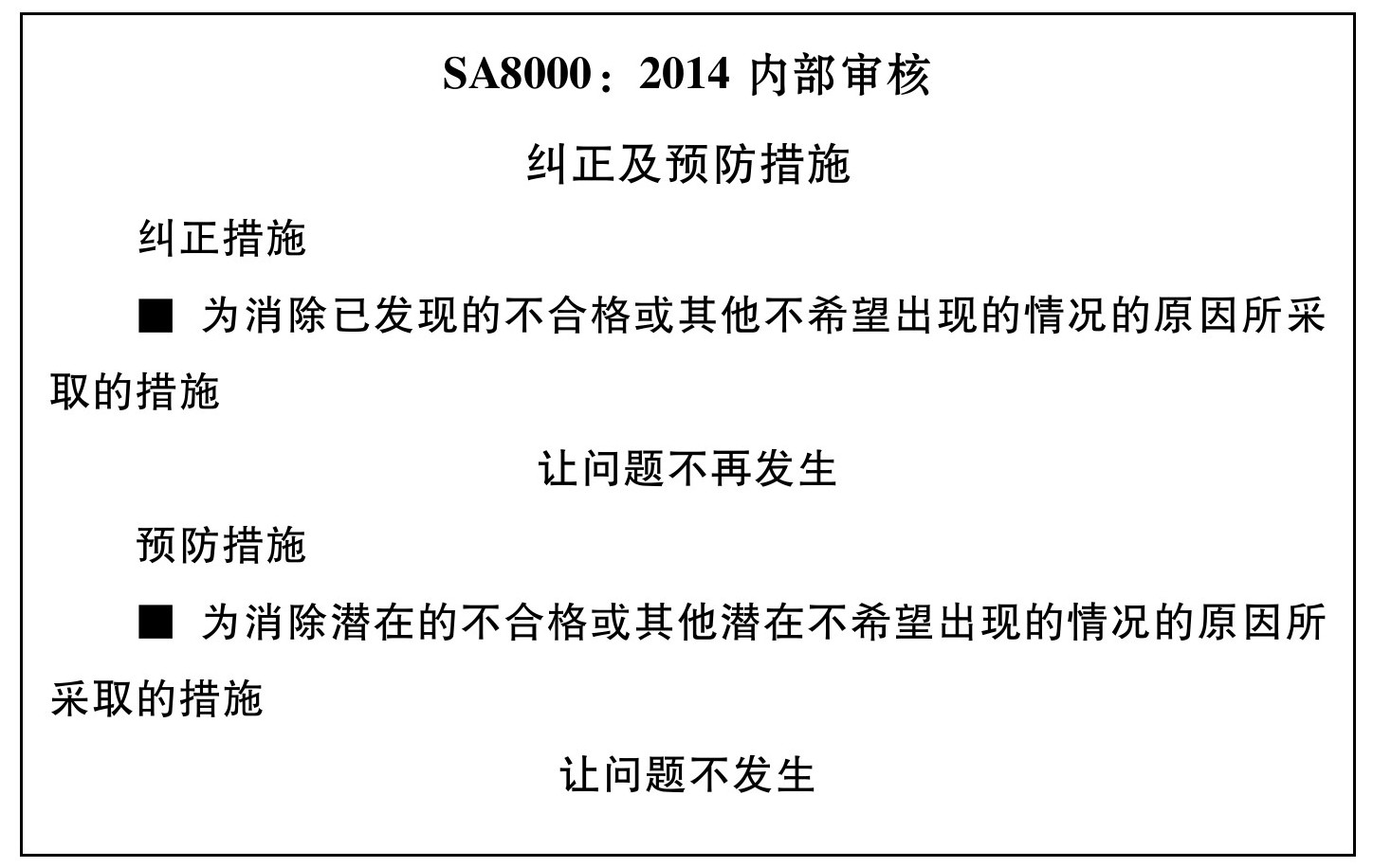 注:预防纠正行动是为了预防发生。