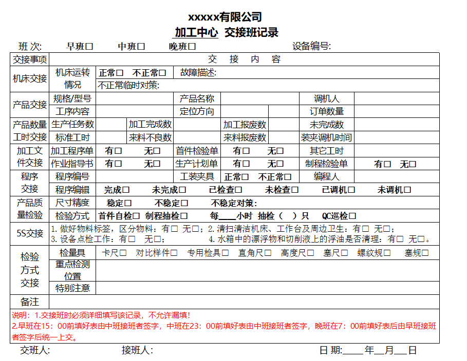 (1)【交接时间】交接工作需要在规定时间,提前10分钟进行交接工作,以确保工作生产的连续性。