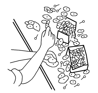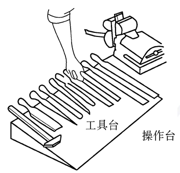 缩短动作距离 | 1.以最适宜的身体部位进行动作 | 以操作不受妨碍为前提缩小操作空间 | 1.利用重力或机械力取料送料 |