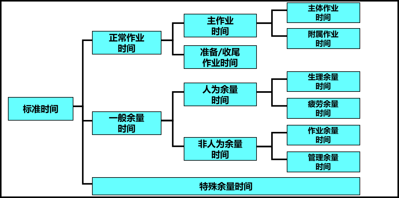 标准工时由正常作业时间、一般余量时间及特别余量时间组成。