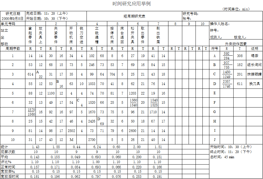 通过对这八个操作单元的10次观测,得到每个操作单元的平均操作时间。