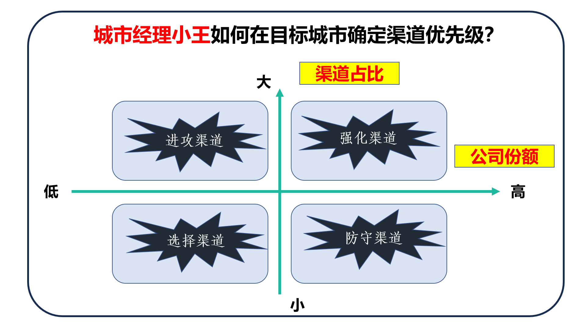 “王总,我觉得把所在城市市场的七八个主要渠道根据这个矩阵指引定位到四个象限并不复杂,关键对于我而言,‘怎么做’才是重点!”