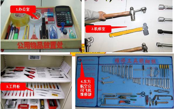 形迹管理是5S管理中的一种方法,形迹管理就是将工具、备件等物品通过对其外形描画或者用厚纸箱、PE膜挖出凹槽存放工器具,并标识出来。