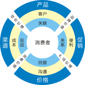 移动互联时代,让传统的营销理论发生了翻天覆地的变化——4P、4C、4R,在网络技术和市场热点的催化下,演变为1P、1C、1R。如果我们把传统营销理论中的4P、4C、4R组合成四个对应的同心圆,产品、用户、关联实际上就成为所有营销动作驱动的核心。