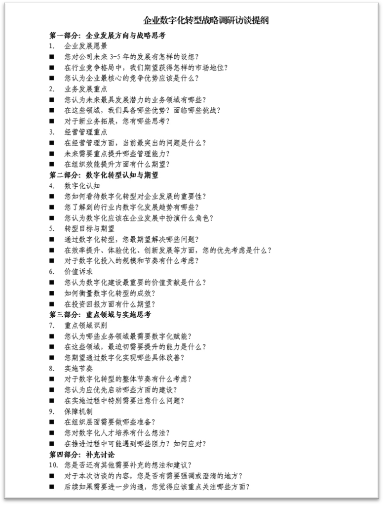 图表 8 企业数字化转型战略调研访谈提纲