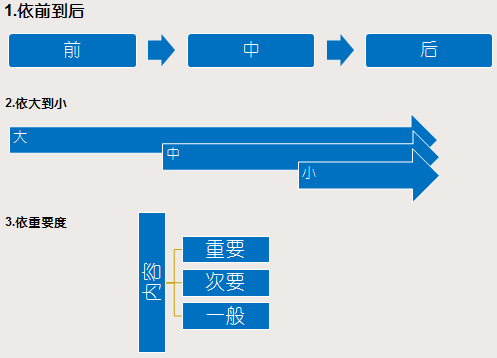三种常见的逻辑顺序有:从前到后,从大到小,从重要到不重要。你可以根据自己的需求来选择。
