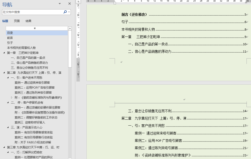 图2-19是笔者写的第一本书《手把手帮你成为顶级导购员》的部分目录。这本书从最重要的部分“心法”开始,然后分开来写,所以这是按照重要性来写的。