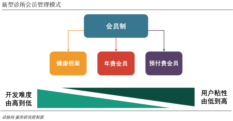 第二种是按年缴纳会员费的会员制,并建立健康档案。用户缴纳的金额不是预存款,只是享受当年会员服务的支出。成为会员后建立会员档案,并可享受免费体检等活动,诊费也可以获得一定的折扣。一般来说新型诊所提供的家庭医生服务、慢病管理,都是基于年费会员。这种会员制对客户的黏性一般,高中低端诊所都适用。