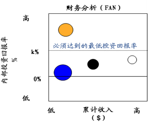 财务分析,以总体收入或利润、投资回报率两个维度来确定是否选择细分市场、或投资产品。