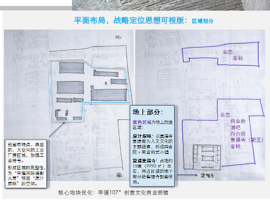 最终形成具有晋商、平遥独特味道的摄影作品廊、艺术中心、艺术家工作室、摄影公司、时尚店铺、餐饮酒吧等,借此形成以展会、论坛、会议为中心的以集福寺复建作为人文文化的主题线索的创意文化商业街镇。