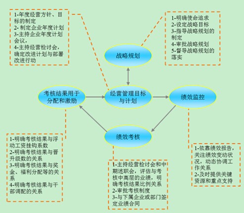 高层管理者在绩效管理的不同阶段承担的责任是不同的,主要责任包括: