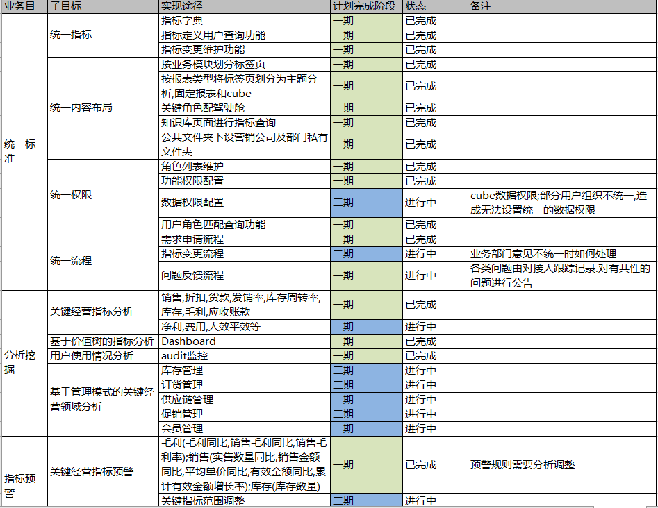 具体的梳理结果以指标清单的形式体现,和各个相关部门讨论消除歧义之后确定下来。