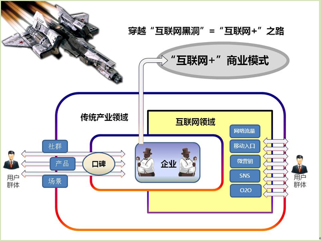 从企业对用户的影响角度,“互联网+”是一种颠覆。互联网化的企业能够更直接地影响用户,更快速地传递信息给用户。以腾讯为例,腾讯以前只知道用户的QQ账号,现在通过微信又掌握了用户的手机号。这样,当腾讯在向用户进行影响传播的时候,可以直接抵达用户。而传统企业与用户的沟通更多是采用单向的广告式传播,只有在消费者接触传播媒体时候,企业的信息才传递给消费者。即使是传统互联网的门户网站似的广告,只要电脑一关机,用户实际也是脱离了这个连接点。随着移动互联网的到来,虚拟与现实世界相融合,每个用户在网络中的社交网络将更加庞大,连接明显增强。而互联网化的企业,通过互联网连接用户,直接掌握真实的用户信息,营销一触即达。
