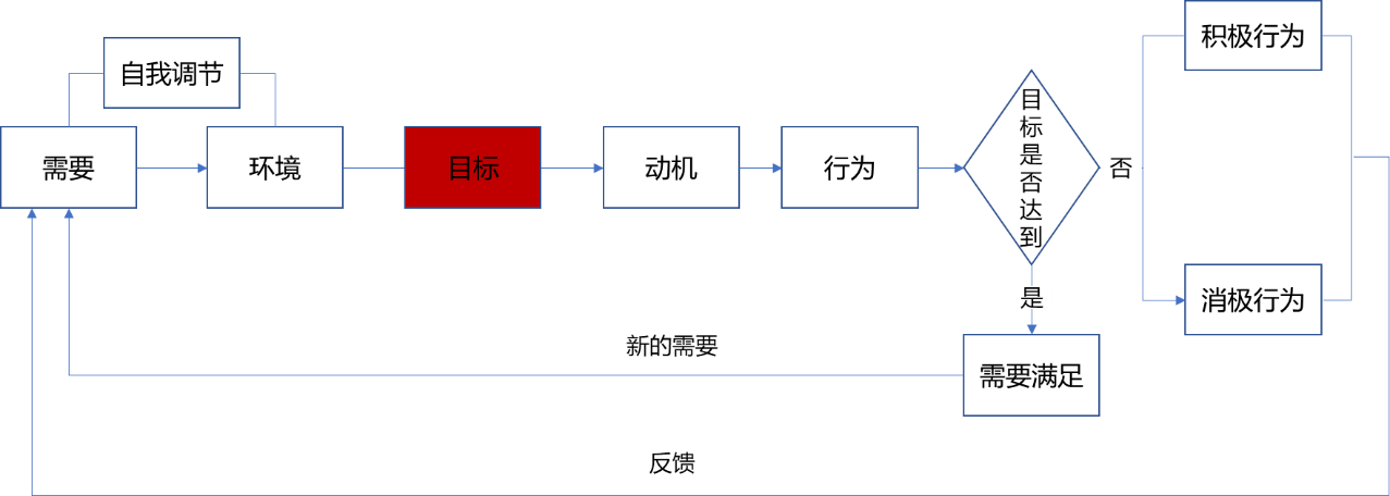 从图4-6可以看到,行为产生的根本原因是“需求”,当需求遇到外部环境时,人们进行自我调节,进而产生了目标,在目标的牵引下产生动机,动机驱动行为去实现目标。愿景作为一种长期目标,在企业中主要发挥三大作用: