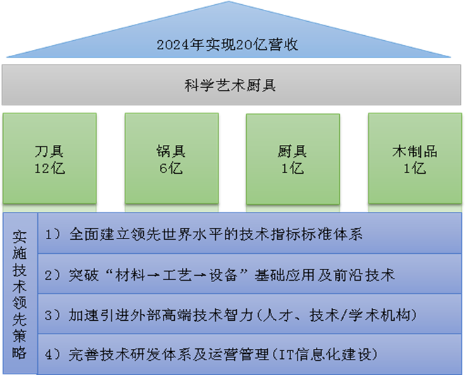 依据五年营收目标,某厨房用品企业技术职能确定执行技术领先策略,具体如图1.10所示。