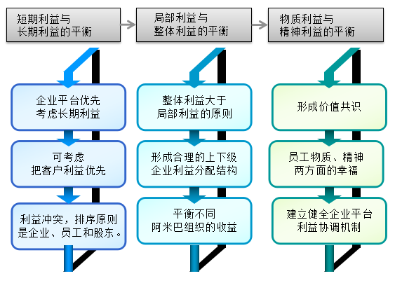 建设企业平台,我们应注意这些事项,即短期利益与长期利益的平衡;局部利益与整体利益的平衡;物质利益与精神利益的平衡。如图6-1所示。