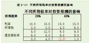 由此可知税负和通货膨胀对投资报酬率的冲击有多大,投资人除了要确保收入能固定成长外,还必须确保资产价值也能随着通货膨胀而成长。同时,要尽量运用纳税筹划技巧,获得税收的减免,以提高税后的投资报酬,保障长期生活品质。