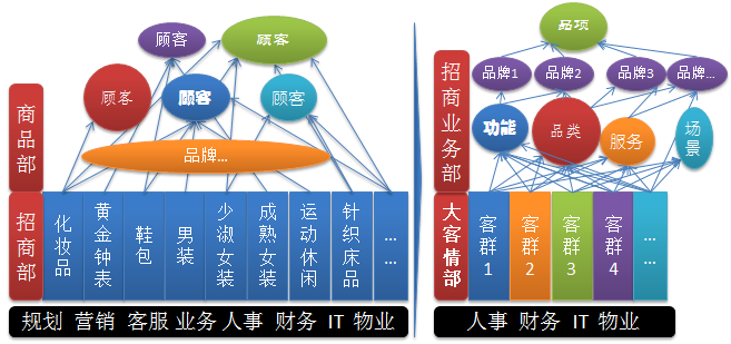 图5-1传统的企划营销、商品部和客服部改组