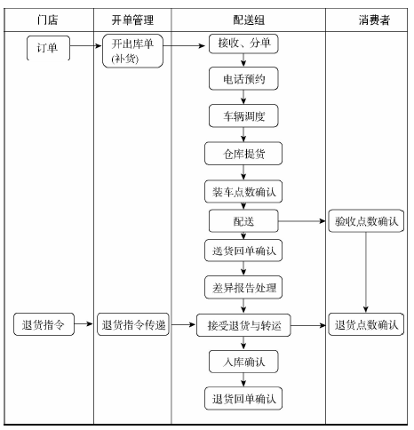 (2)每次配送前,配送管理员都要事先交代司机具体的送货线路、家数、数量与其他要求(责任人:配送管理员)。