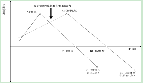 从经济学理论来看,当MV出现拐点的时间右移、MV=0的时间右移、MV<0后的减小速率进一步放慢时,一家企业才能真正实现和兼顾做强、做大、做久。也就是随着企业规模扩大,企业提升运营效率、降低企业运营成本,使得MV的拐点和0点右移,从而提升企业创造价值的能力。