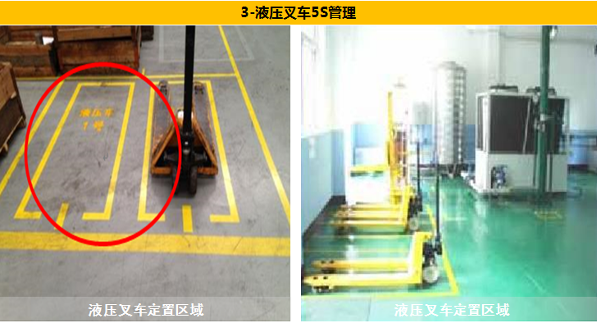 明确厂区手动液压叉车摆放位置,人人都知道拿取点、放置点,达到一目了然、高效管理的目的。