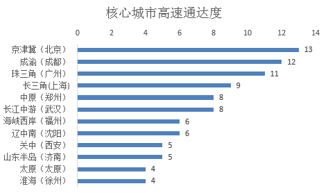 通过对城市群首位核心城市市区高速公路网络通达程度反映城市群高速公路的便捷程度。