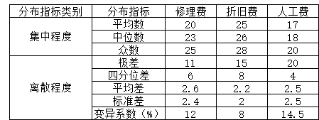 表7-1 各类成本项目的各分布指标