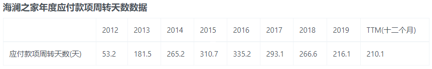 最后看看它的应付款项周转天数