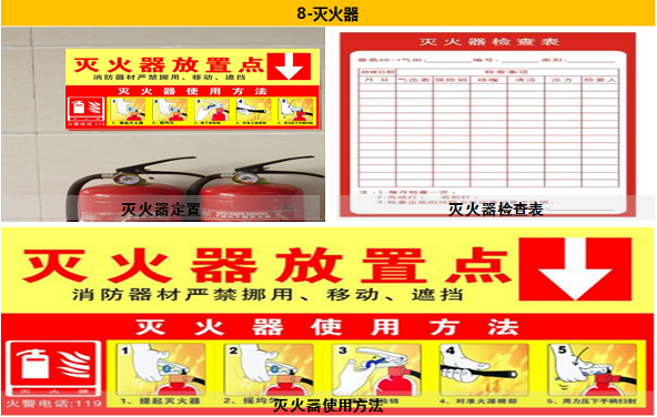 明确厂区所有灭火器存放点、使用方法、检查周期,避免发生紧急情况找不到灭火器或灭火器不能用。