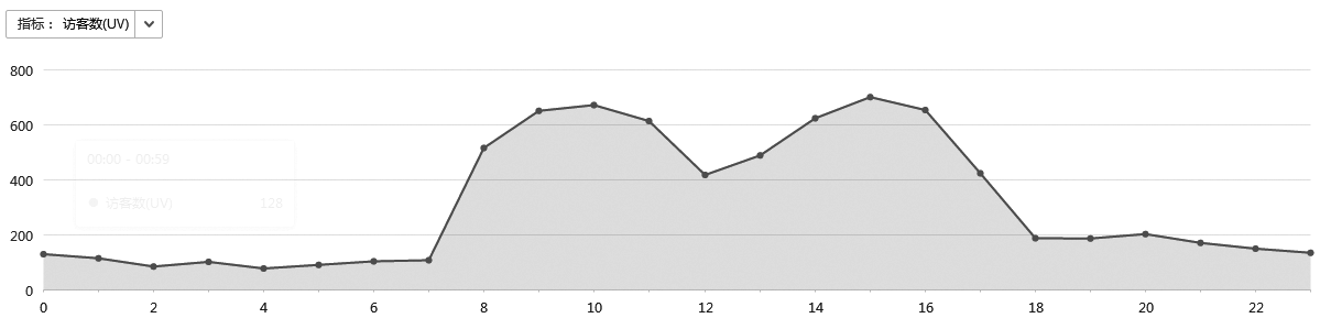 【趋势分析】该工具可以统计某天数内,访客数在一天24小时内的分布情况,如图6-6是某个账户最近30天内不同时段的访客数分布。