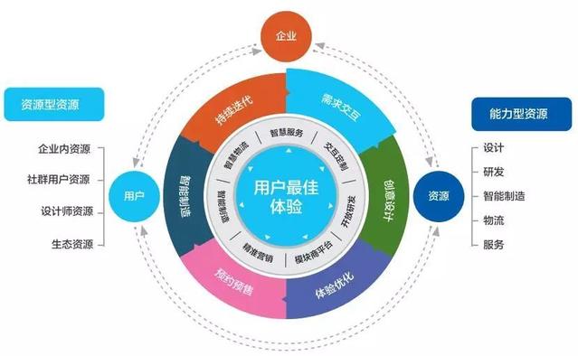 从国内到国外,短短4个月时间里,海尔COSMOPlat的身影已遍布澳洲、欧洲和美洲,不仅代表中国制造成为“国家模式”,更走出国门成为世界工业领域的风向标。2018德国汉诺威工业展上,海尔COSMOPlat大放异彩。以用户终身价值为核心的资源全流程互联互通的工业互联网切入模式受到追捧,用户互联、设计众创、工厂竞单的流程再造深入人心。如图1-1所示。