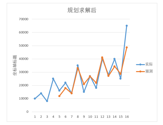 通过对比,规划求解后的模型的趋势来看,预测的走向和实际的走向更加贴切,特别是第9期到第11期的变动,拟合度显得更加高。