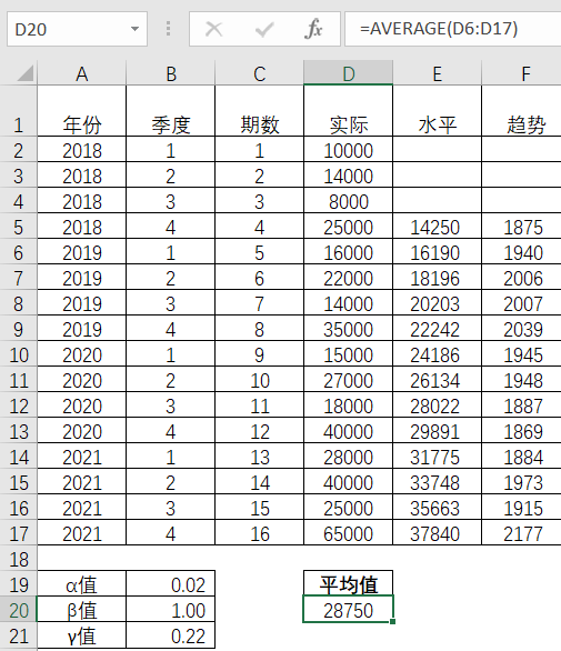 首先从各期实际值中得出平均值。