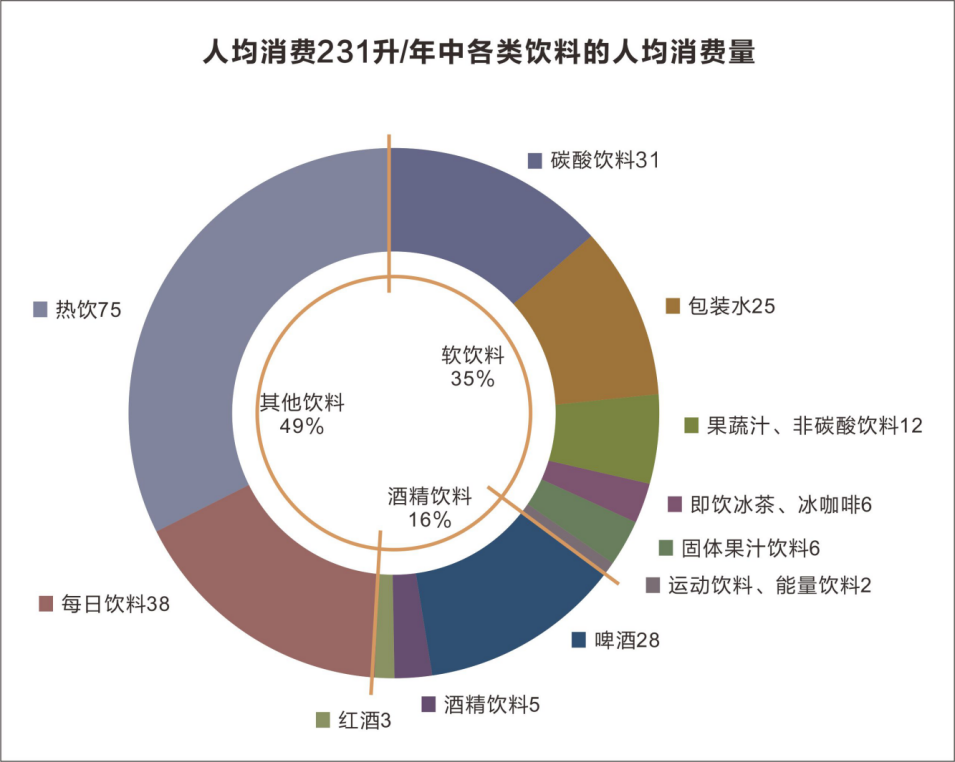 图1-3 传统市场细分化逻辑下的饮料市场占比示意图-2014年