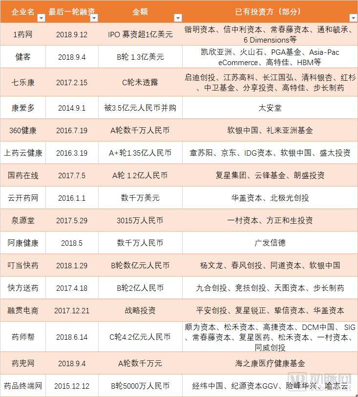偌大的医药电商市场,资本玩家不少,大一点的是云锋、复星、IDG、经纬、软银、北极光,小一点的基金及个人投资者也有。医药电商既有互联网属性,又有零售属性,线下投入很重要,是个“重”模式。这就是说这不是一个赢家通吃的市场,随着规模的扩张,成本也会相应增加,有“边界” 。所以很难押赛道,只好一家家做调研。但是也说不定来个“华兴资本”,撮合大家玩消消乐。