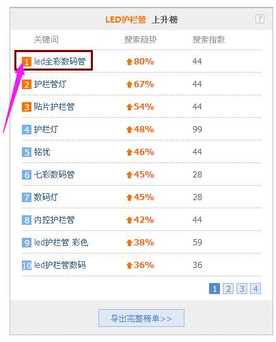 首先要看关键词,如果这个关键词后面的搜索百分比较大,那么说明该相关产品的市场比较大。其次看搜索指数,搜索指数越大说明搜索的人就越多。如果我们发现上升榜的词出现在首页,优化会比较有意义,如果不在首页,优化可能有难度。