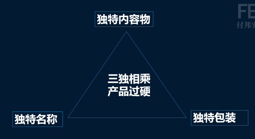 产品的创新,需要做到“三独”,我提出独特的内容物,独特的名称概念、独特的包装,称之为“三独打造产品力”法则。