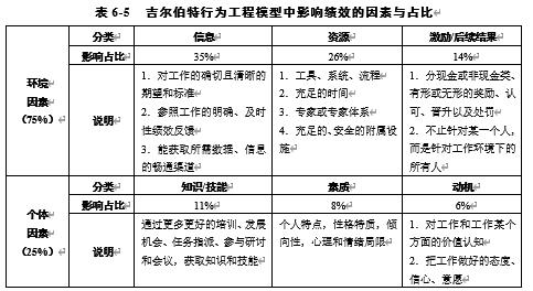 表6-5 吉尔伯特行为工程模型中影响绩效的因素与占比