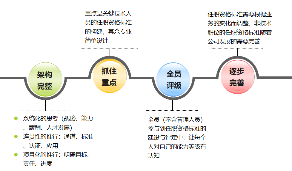 为此,对于评价要素及标准的设计,HC顾问团队根据企业的实际情况,提出了AT数据公司任职资格体系构建实施路径: