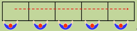 不对作业进行分割,每个操作员完成单元内所有的工作,操作员在单元内有间隔地分布在不同工位上(相隔几个工位),如图2-6所示。