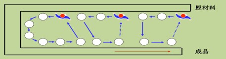 -     操作者从最后一道工序开始,依次向上移动,最后到达第一道工序;