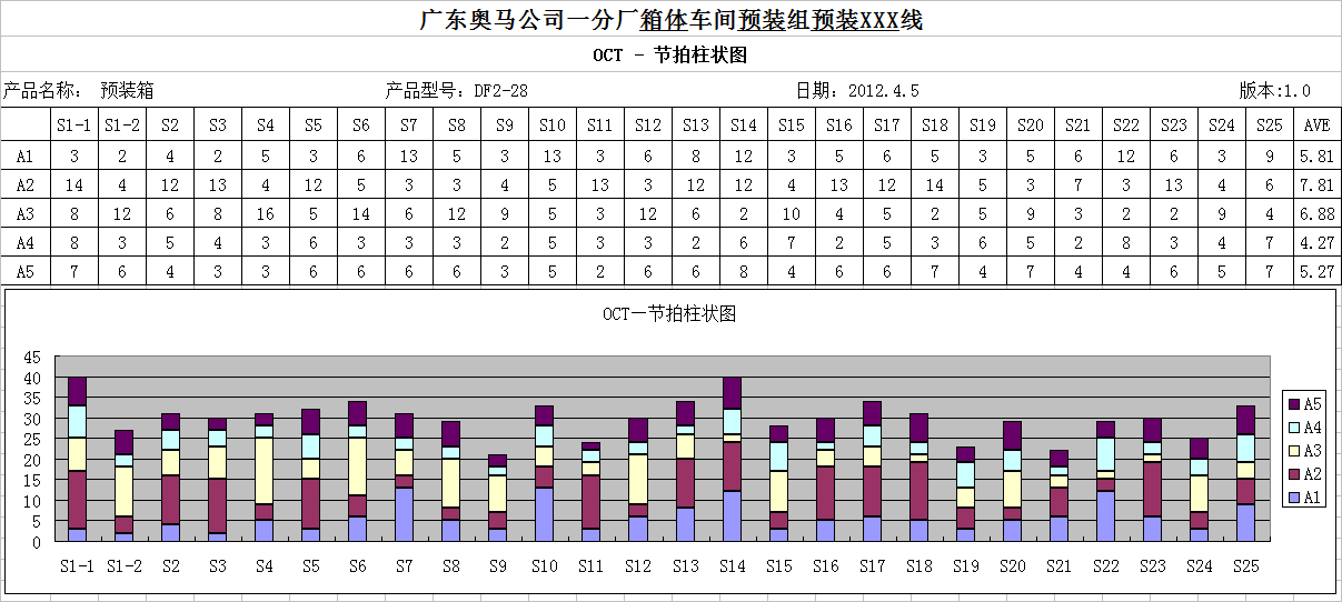 绘制生产线平衡图,可应用山积图。山积图是将需要分析流程中每个步骤的作业要素,用可视化的方式将作业要素形成堆叠条形图,使之更易于对生产线平衡进行分析和改善的一种方法。山积图形象地表现了一条生产线各作业人员的作业要素、作业时间、作业内容等信息的一种柱状分析图表。